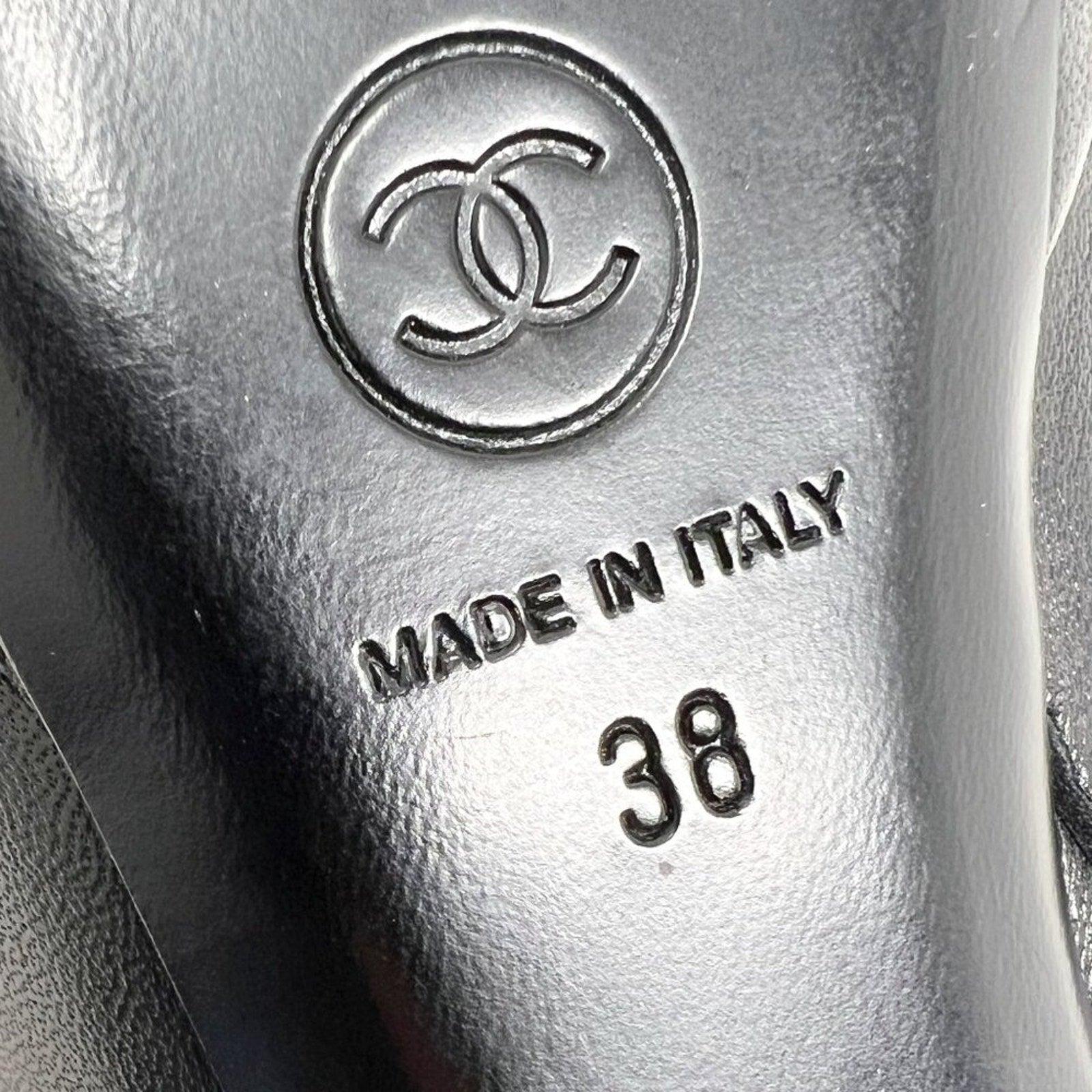 Chanel Black Leather Chain Heel Booties EU 38 CC Cap Toe Ankle Boots