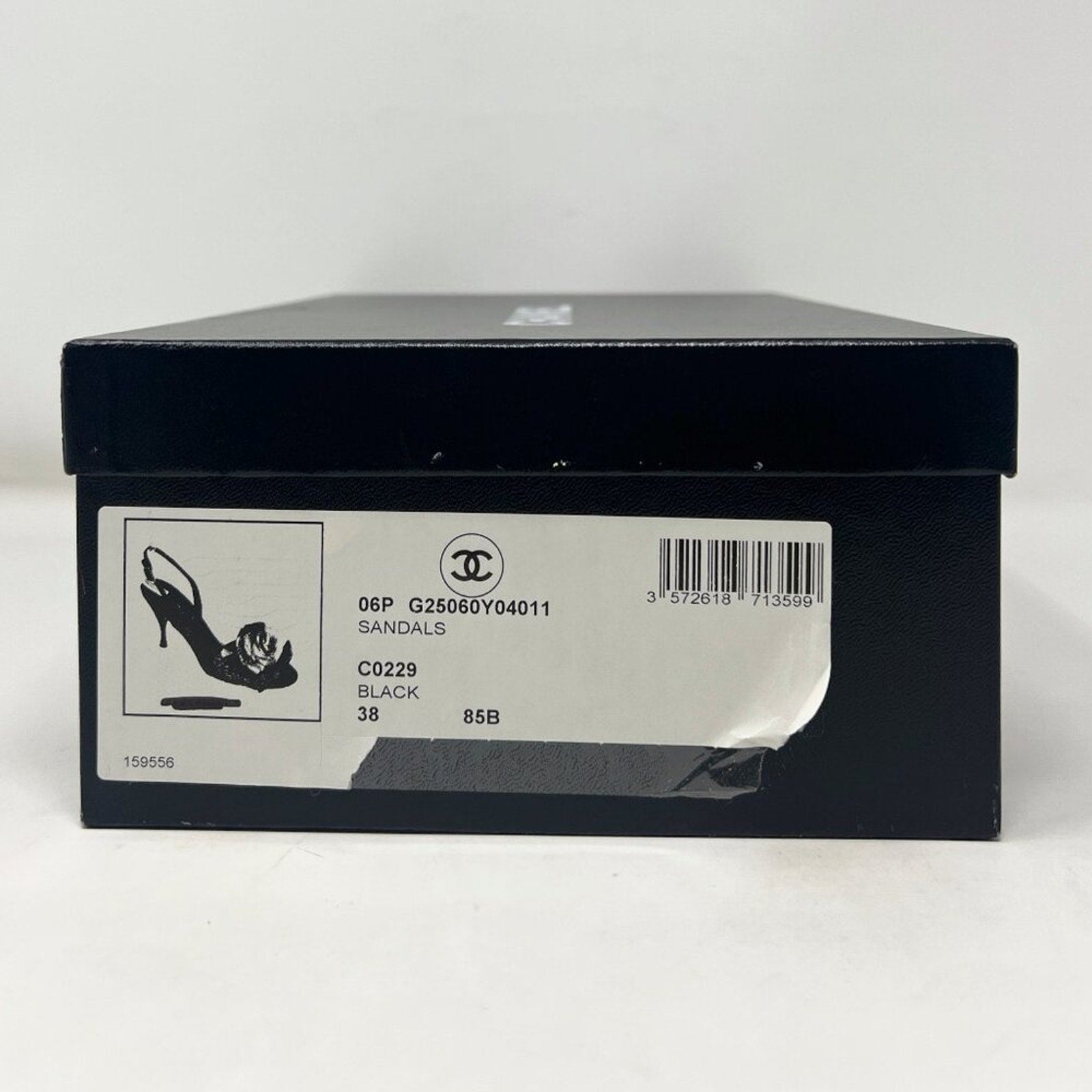 Keywords: Chanel camellia heels, flower heels, black slingback sandals, dressy party heels, wedding/bridal shower shoes, cocktail heels, vintage Chanel 2006, stiletto 85mm, size 38, Karl Lagerfeld, Archival Chanel, Y2K Chanel shoes, Retro Chanel, old money aesthetic, preppy, classic, feminine.