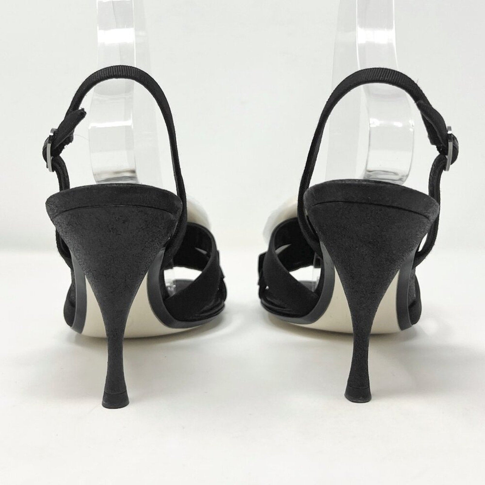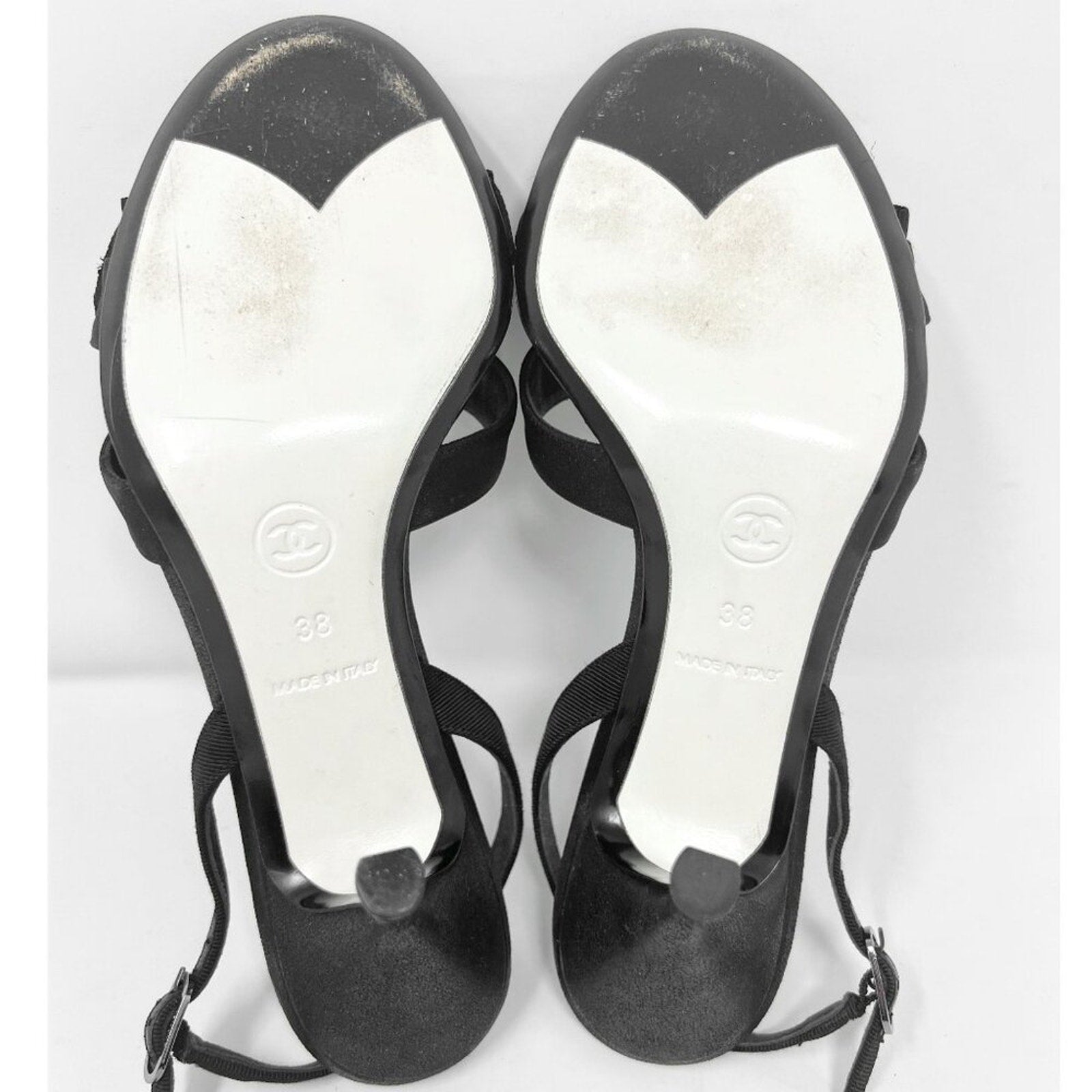 Chanel Camellia Bow Grosgrain Slingback Heels Black/White EU 38 85mm
