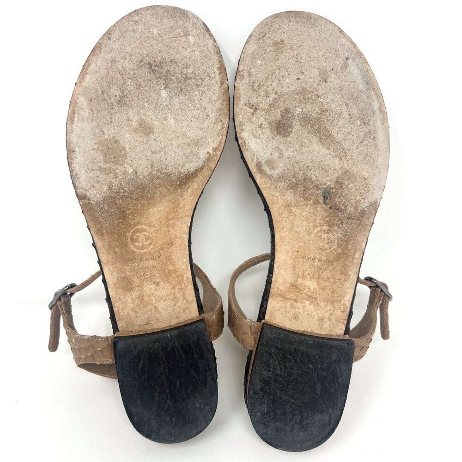 Chanel Python Leather CC Logo T-Strap Sandals Tan/Black EU39.5
