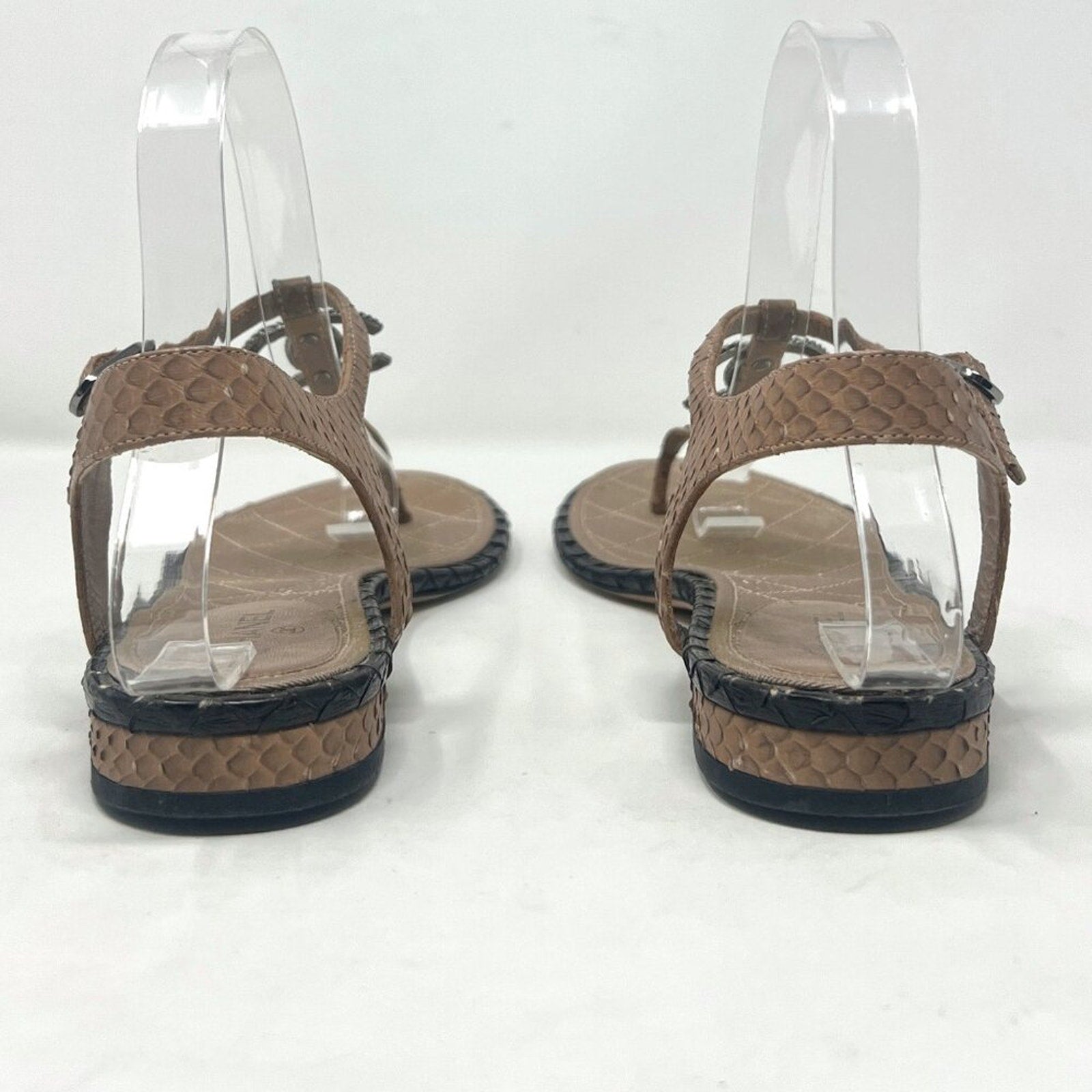 Pre-owned with normal wear—light scuffing on the footbeds and outsoles, minor edge wear on the black sole trim. Python straps and silver hardware remain in excellent shape with no cracks or discoloration. See all photos for details.